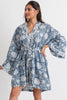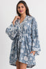 Sevya Kimono Robe is printed using eco-friendly dyes in 100% soft cotton by Artisans in Rajasthan, India. Using hand-carved wooden blocks, each color is stamped forming a unique artistic pattern.
