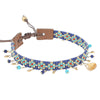 Chan Luu seed beaded strand is crafted with a gold nugget on natural brown leather. Adjustable pull cord closures are secured to the leather strands to provide a customized fit on your wrist. Turquoise, citrine and lapis semi-precious stones swing from the beaded strand for a charming element you can wear all season long.