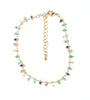Delicate gold or silver tone bracelets composed of colorful beads. Charms slide right on.