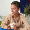 World Finds Kantha Aura Necklace features four layers of colorful strands omade out of repurposed Kantha textile beads and embellished with three sets of gold-toned brass beads.