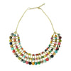 Three symmetrical strands of bright recycled Kantha fabric beads combined by rows of golden square beads, forming a gorgeous center collar necklace.