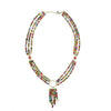Three linear rows of Kantha beads hang from a brushed gold metal ring forming a fringe of repurposed Kantha textile beads.