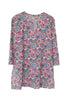 A white tunic top with a floral print of pretty colors.