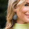 The Anju Silver patina earrings are handcrafted by artisans in India in a black floral circle design.