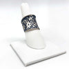 The Anju Silver patina ring is handcrafted by artisans in India with a small blue floral design.