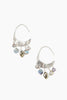 These Chan Luu hand-hammered crescent hoops are a best seller. They feature a cascade of champagne and peacock blue pearl, labradorite, pyrite, and satin crystal on sterling silver.
