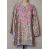 Buy online Dolma women's silk tunic top of pastel flowers and rose pink hand embroidery. Perfect to wear with linen pants or leggings.
