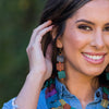 Upcycled cattle horn triple square beaded earrings from the Anju Omala Rainbow collection made with natural dyes.