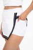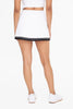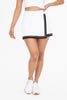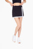 Take your game to the next level with our fashionable and modern striped tennis skort. It is crafted from a recycled nylon jersey with a built-in undershort for convenient coverage and convenience. Additionally, the skort is equipped with retro stripes and pockets on the undershorts for storing small items.