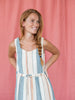 The Mata Traders Mondrian dress has spring-like pastel color stripes on cotton printed fabric. Sleeveless and flowy, this dress will make you at ease at any summer heat condition.