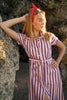 This elegant and comfortable-wear Jackie Safari Midi Dress from Brunna Co. is a traditional handwoven 100% cotton fabric from Java with button-down closure and cotton belt.