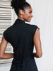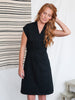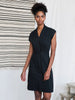 The Mata Traders Midtown is a LBD made out of organic cotton jersey with a tie at waist and a high collar that elevates that look.