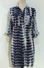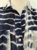 Shibori cotton button-down navy shirt with handmade red stitching detail. Perfect to use with leggings!