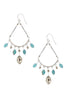 Chan Luu chandelier earrings feature Mexican turquoise and pyrite semi-precious stones and SWAROVSKI® crystals on a sterling silver curved frame that suspends Mexican turquoise and pyrite semi-precious stones and SWAROVSKI® crystals.