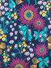 The Mata Traders Bellini Dress is a sundress for the flower girl with a fuchsia floral print design on a navy blue organic cotton jersey.