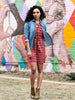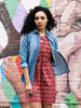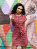 A drawstring waist to accent your body figure with a beautiful crimson color in a crafty fabric.