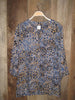 Navy Batik tunic is an Indonesian technique of wax-resist dying applied to the cloth.