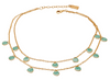 Matte 24kt gold plated or sterling silver plated delicate necklace featuring a double row of thin chain and round enamel bead dangles. Enamel on both sides of the beads, so delicate and charming piece to have!