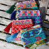 This petite coin purse is handmade with love; it is embellished front and back with Phulkari textiles. Phulkari fabric is highly textured and brightly colored.