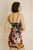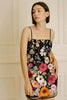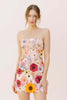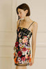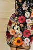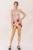The Storia multi-floral collaged mini dress features a fitted bodycon silhouette with 3D flowers.