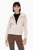 This Mono B corduroy moto jacket is a must-have in any wardrobe! It's expertly crafted with a stretchy corduroy fabric, features a zippered high-neck collar, pockets, a tailored fit and elasticized waistband for comfort, plus snap-cuff vents.