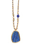 Learn how to layer with Chan Luu chains of embellished lapis semi-precious stone beads woven in a nylon cord strand filled with gold nuggets. Topping it all with an organically shaped lapis semi-precious stone pendant.