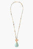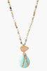 Chan Luu natural long beaded necklace features matte multi amazonite semi-precious stones with an amazonite and druzy agate pendant beach tone-inspired.