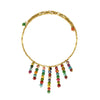 Colorful Kantha beads fall linearly from a choker of metallic gold beads. A delicate yet statement-making silhouette.