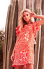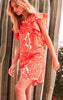 The Amenapih Rice is a coral short backless dress with white floral print.