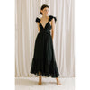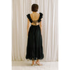 The Storia Monochromatic Black Romantic Maxi Dress is dotted with glittery, embroidered polka-dots, plus a divinely deep neckline, fluttery ruffled straps, and a cinched empire waist. Its maxi-bottom ruffles will have you twirling, while an open back with a crisscross tie and a stealthy lower-back zipper will allow you to swish 'n' sway with abandon!