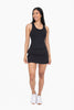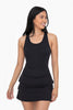 Designed for peak performance, this active tank dress features contouring princess seams with a built-in bra and thick straps with a keyhole cutout at the back. A double-layer waistband provides added support, while a built-in panty liner and zippered back pocket provide comfort and convenience.