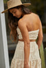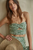 This strapless cropped top features a woven eyelet cotton material with a twist front.