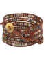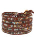 The Chan Luu handmade strand of natural brown leather wrap bracelet has multi semi-precious stones and bronze shade Swarovski® crystals. Turquoise, sodalite and red jasper cabochons are woven to the length and are intricately hand wrapped in 18k gold plated silver.