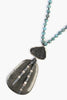 Chan Luu turquoise semi-precious stones long necklace with a pyrite pendant offers an oceanic hue statement.