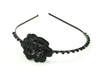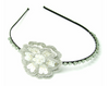 Delicate, lacey flowers are hand crocheted and embellished with tonal sequins. Faceted, tonal glass beads encircle the coated headband for extra panache.