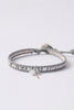 Chan Luu silver beaded blue shade wrap bracelet with crystals. One strand of iceberg genuine leather that anchors a delicate semi-precious stone charm in the center. Easily layer this piece with your favorite silver tone jewelry.