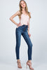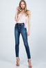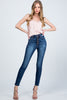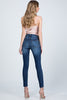 These Special A skinny jeans feature ankle length and exposure buttons on medium-dark denim.