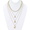 Four strand layered necklace with sea life charms: mermaid, oyster shell, and a starfish. Layered using a variety of link chains and a beaded ball chain as the short layer.